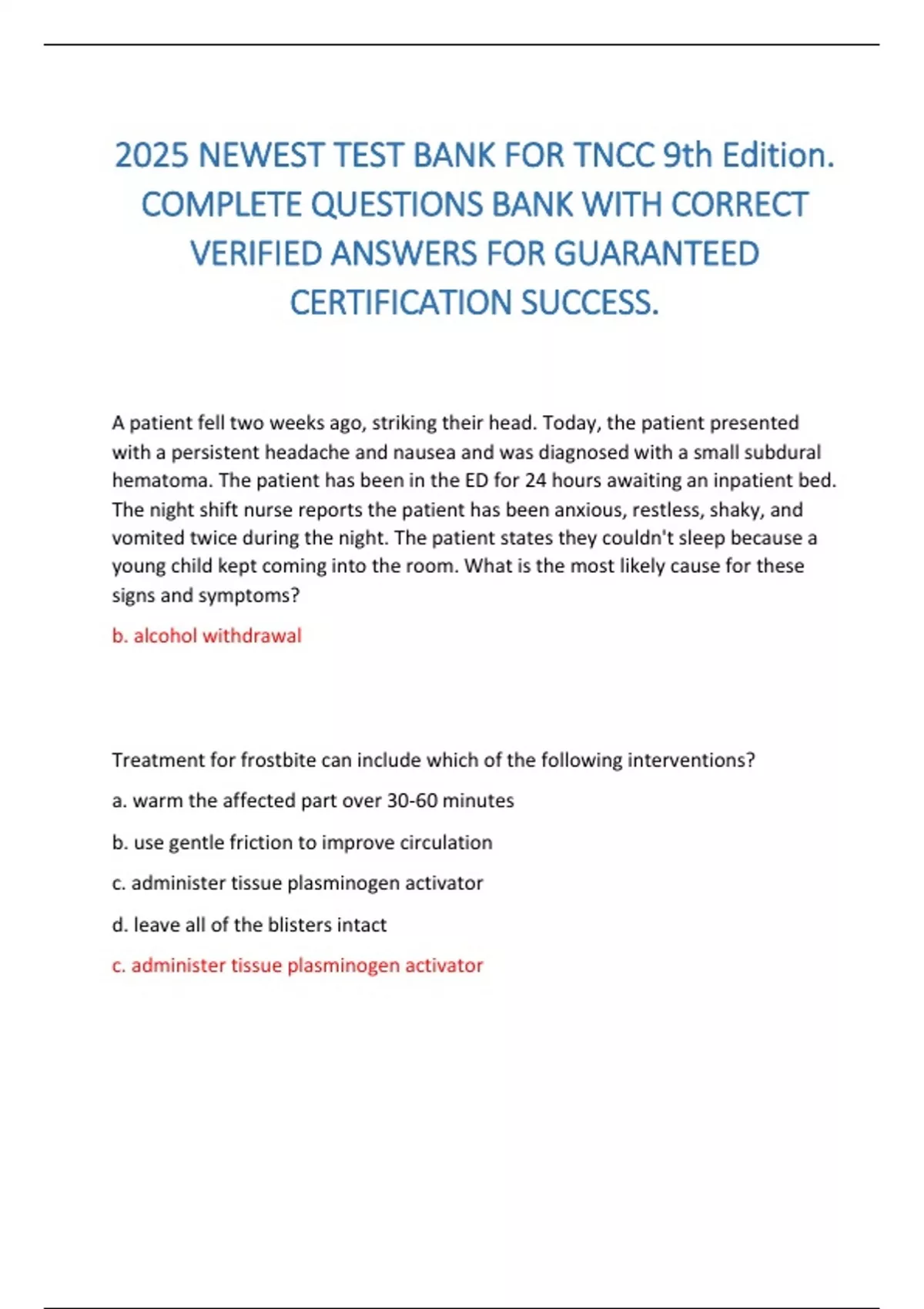 2025 NEWEST TEST BANK FOR TNCC 9th Edition COMPLETE QUESTIONS BANK