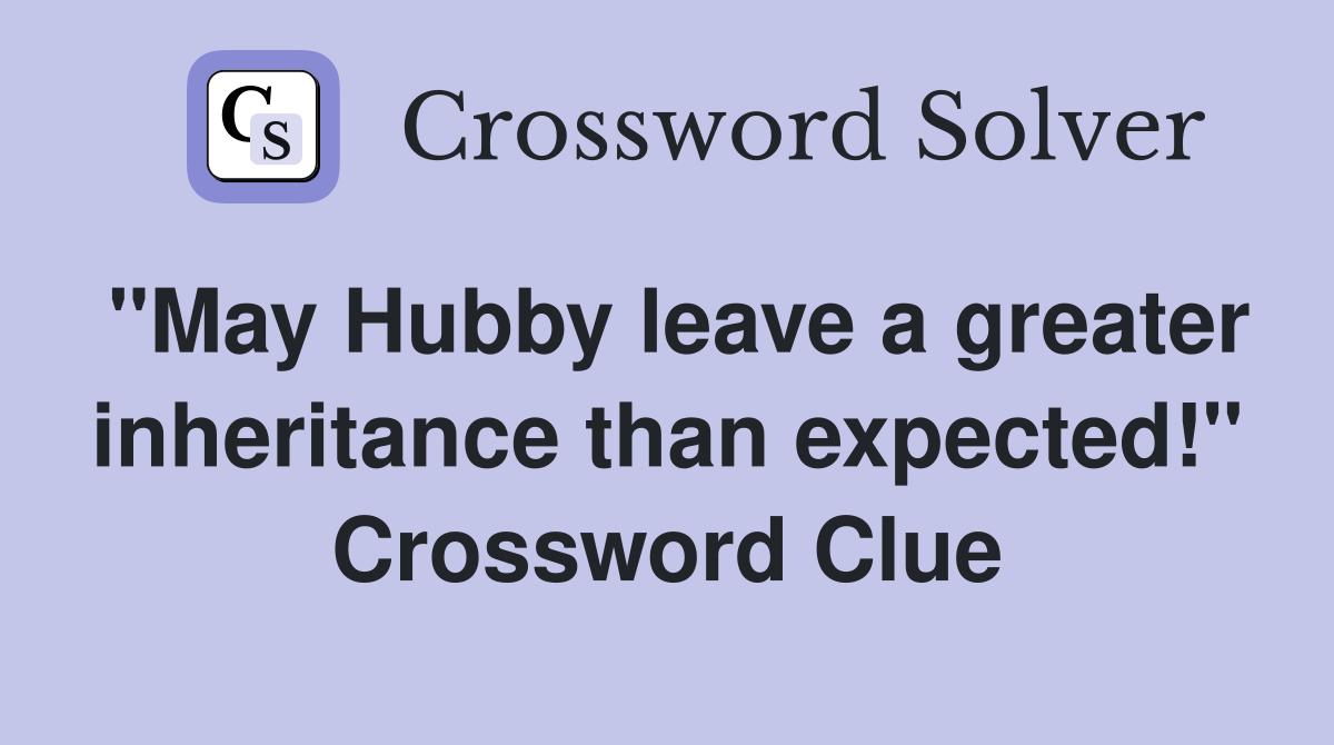 quot May Hubby leave a greater inheritance than expected quot Crossword Clue