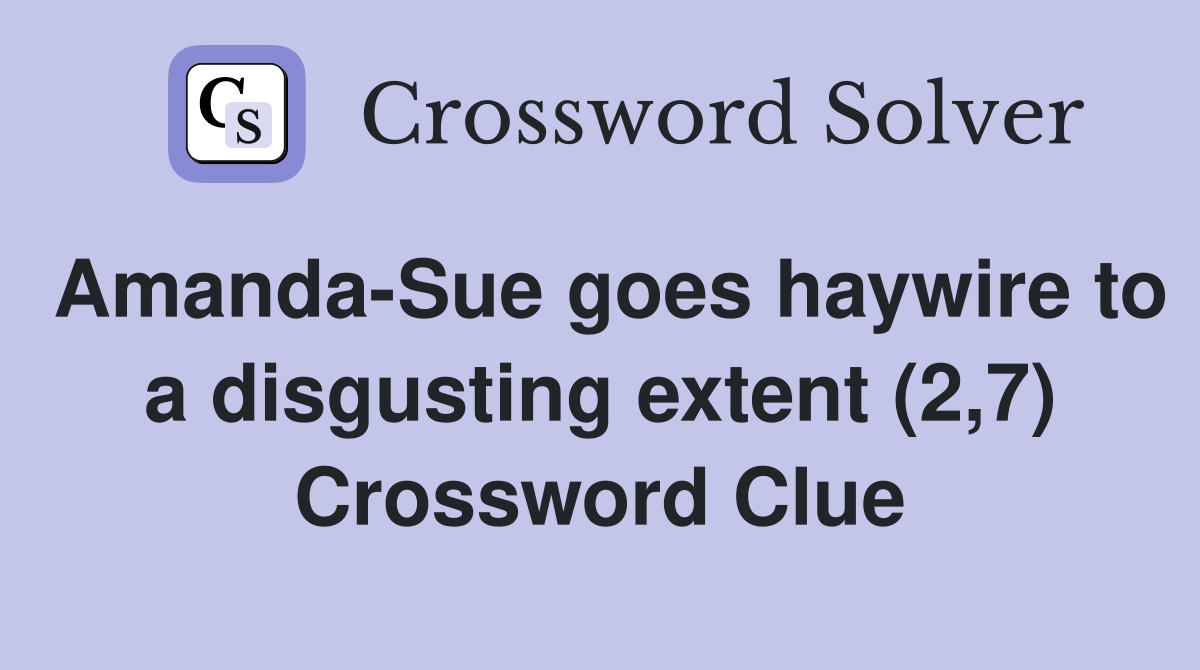 Amanda Sue goes haywire to a disgusting extent (2 7) Crossword Clue