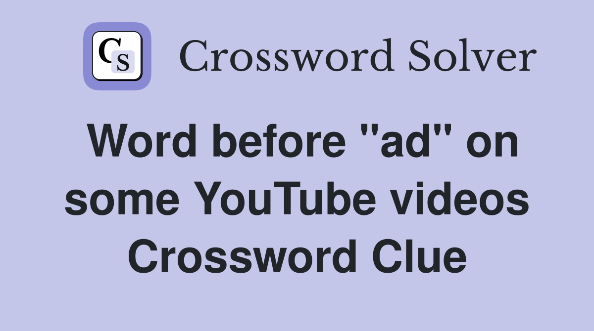 Word before quot ad quot on some YouTube videos Crossword Clue Answers