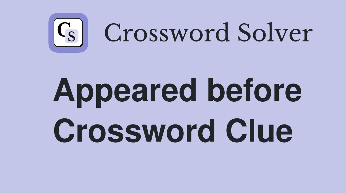 Appeared before Crossword Clue Answers Crossword Solver
