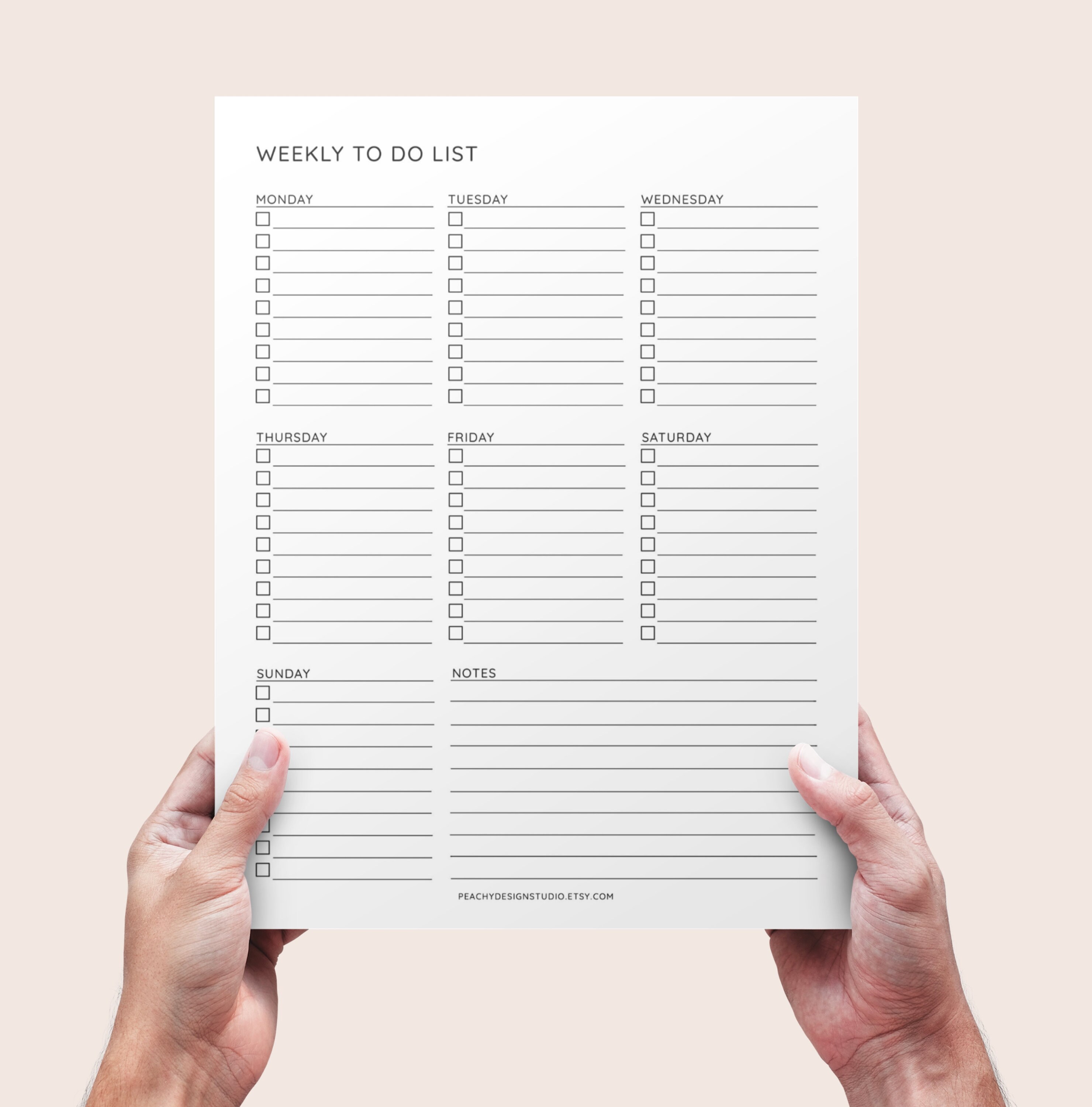Weekly to Do List Printable INSTANT DOWNLOAD PDF Task Organizer