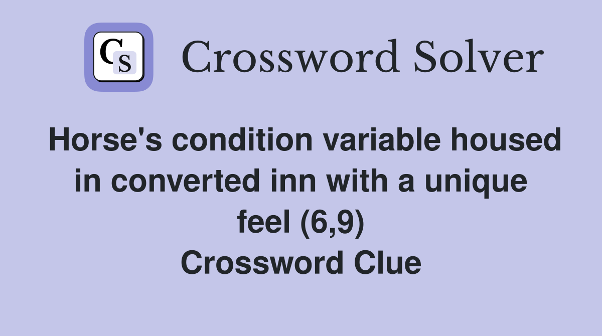 Horse #39 s condition variable housed in converted inn with a unique feel