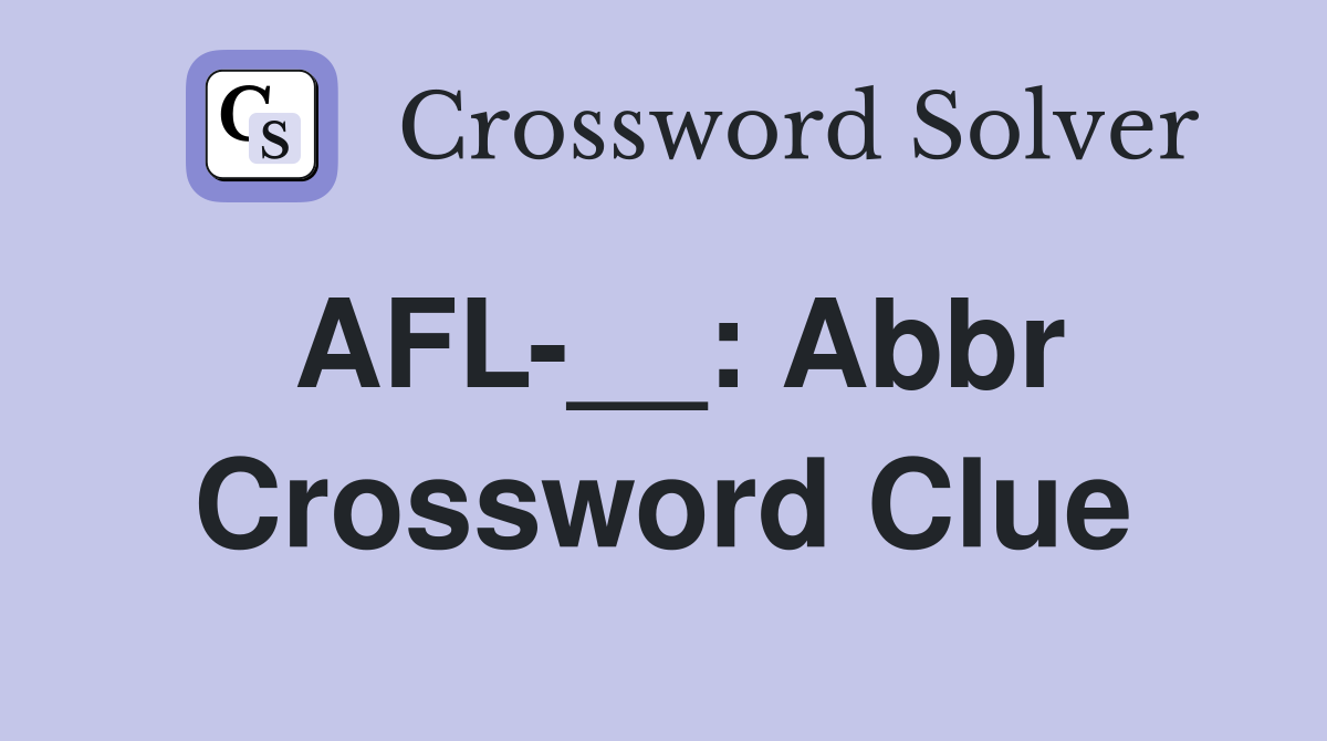 AFL : Abbr Crossword Clue Answers Crossword Solver