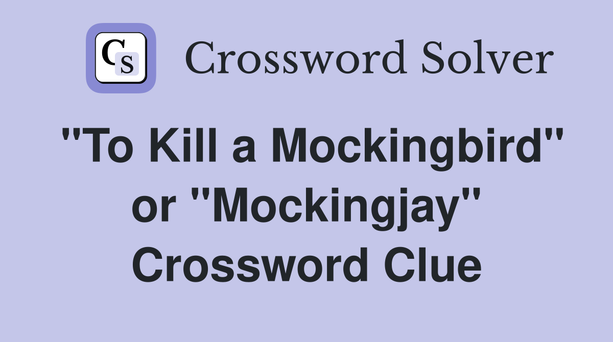 quot To Kill a Mockingbird quot or quot Mockingjay quot Crossword Clue Answers