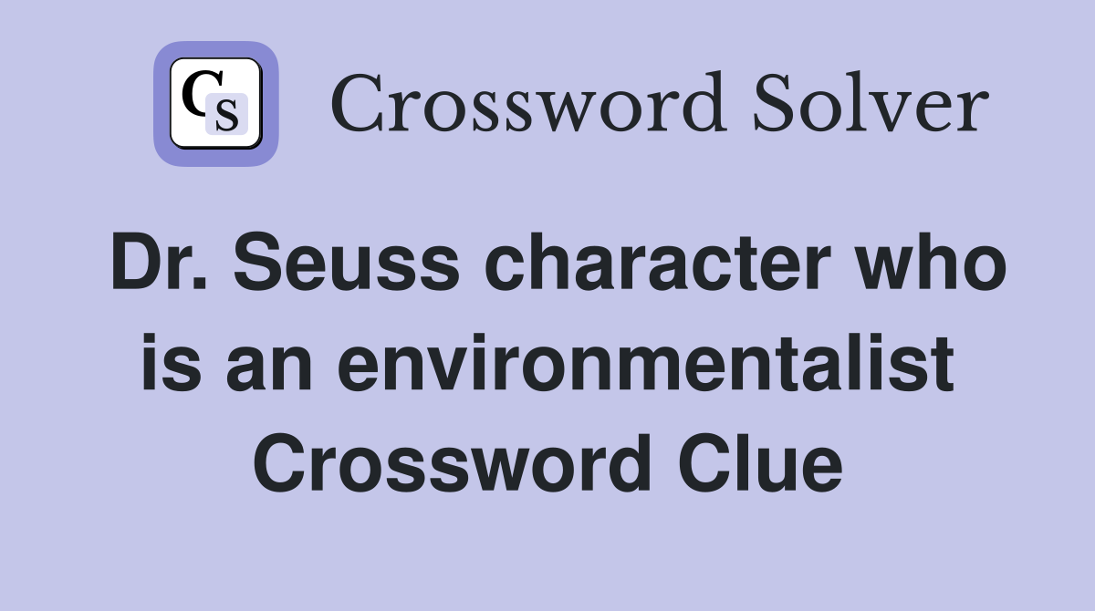 Dr Seuss character who is an environmentalist Crossword Clue Answers