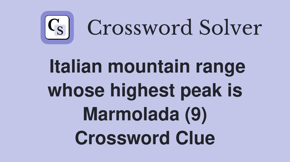 Italian mountain range whose highest peak is Marmolada (9) Crossword