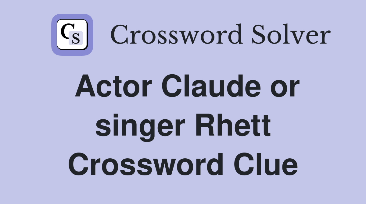 Actor Claude or singer Rhett Crossword Clue Answers Crossword Solver