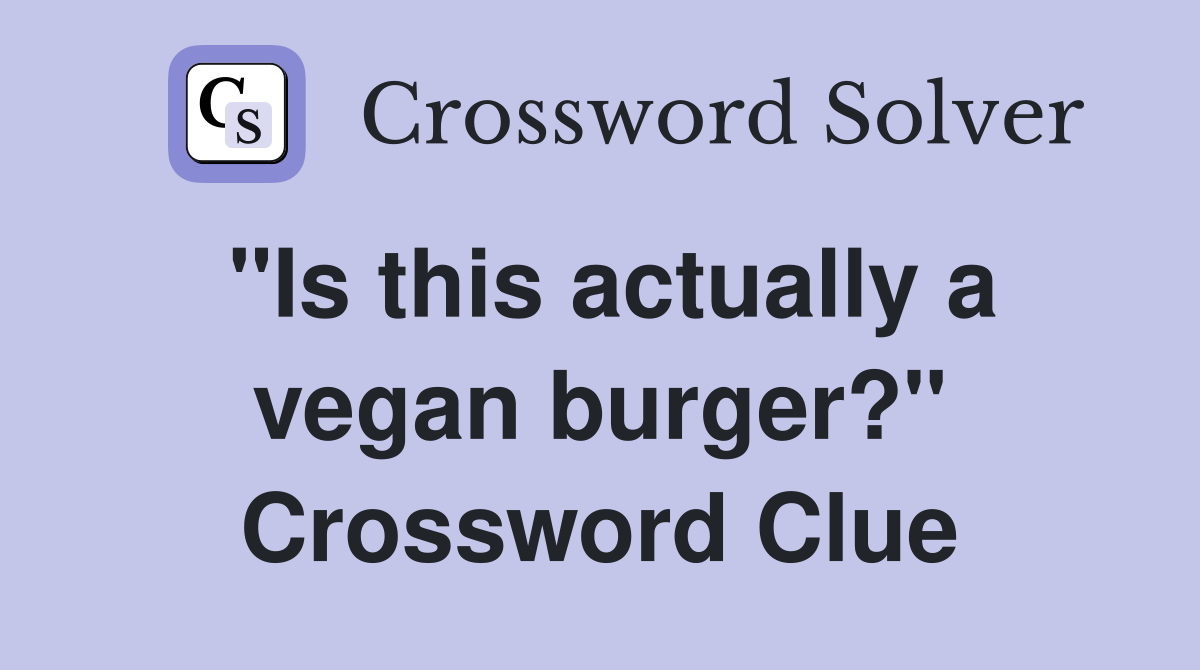 quot Is this actually a vegan burger? quot Crossword Clue Answers Crossword