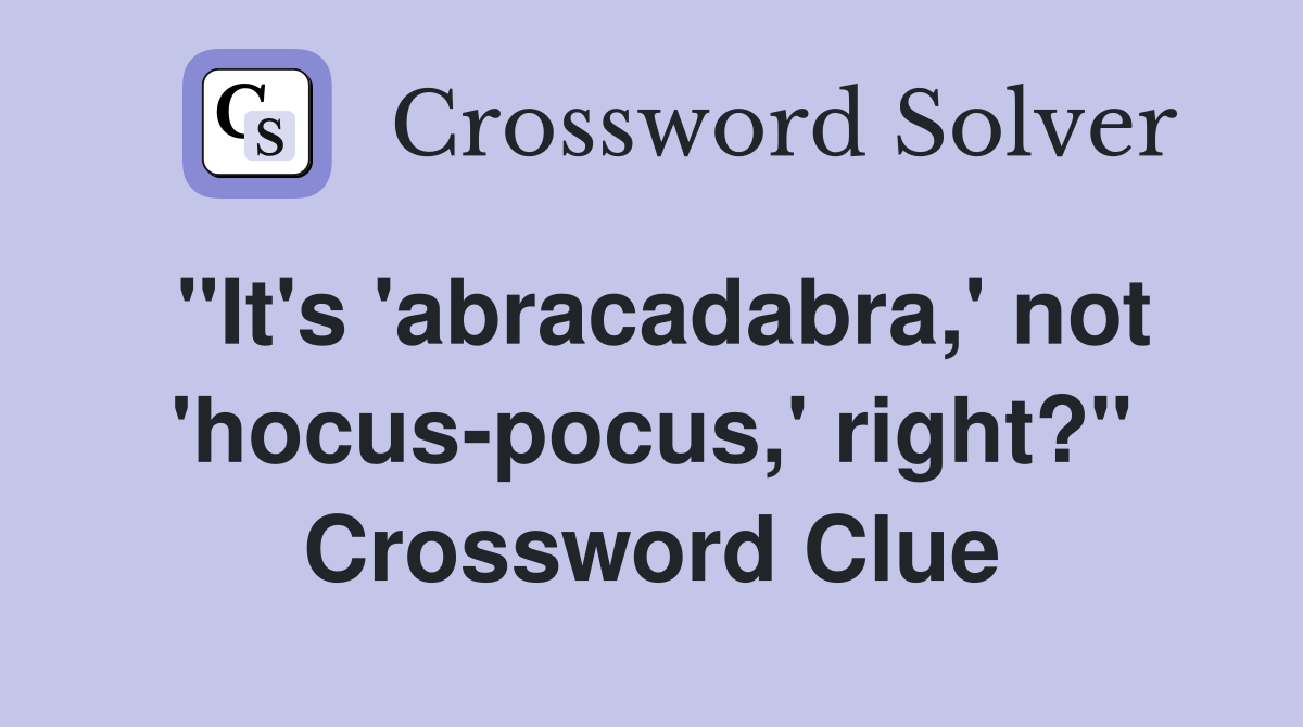 quot It #39 s #39 abracadabra #39 not #39 hocus pocus #39 right? quot Crossword Clue