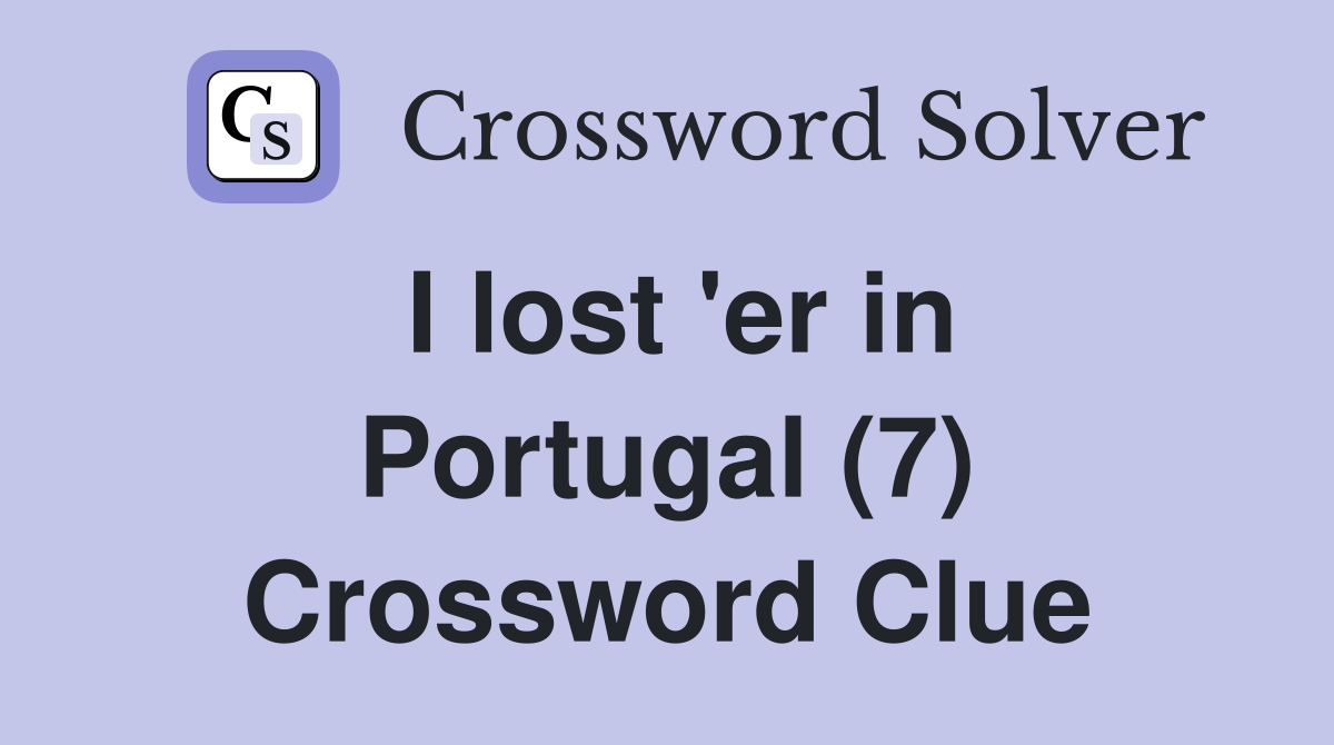 I lost #39 er in Portugal (7) Crossword Clue Answers Crossword Solver