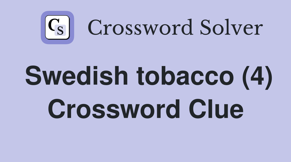 Swedish tobacco (4) Crossword Clue Answers Crossword Solver