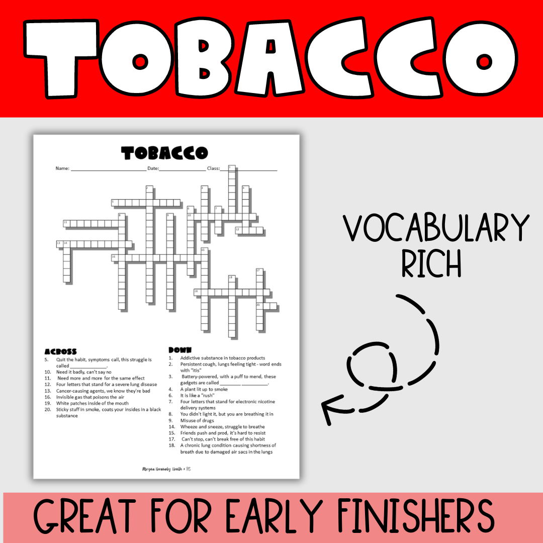 Tobacco Crossword Puzzle :Digital by STEM IN THEM TpT