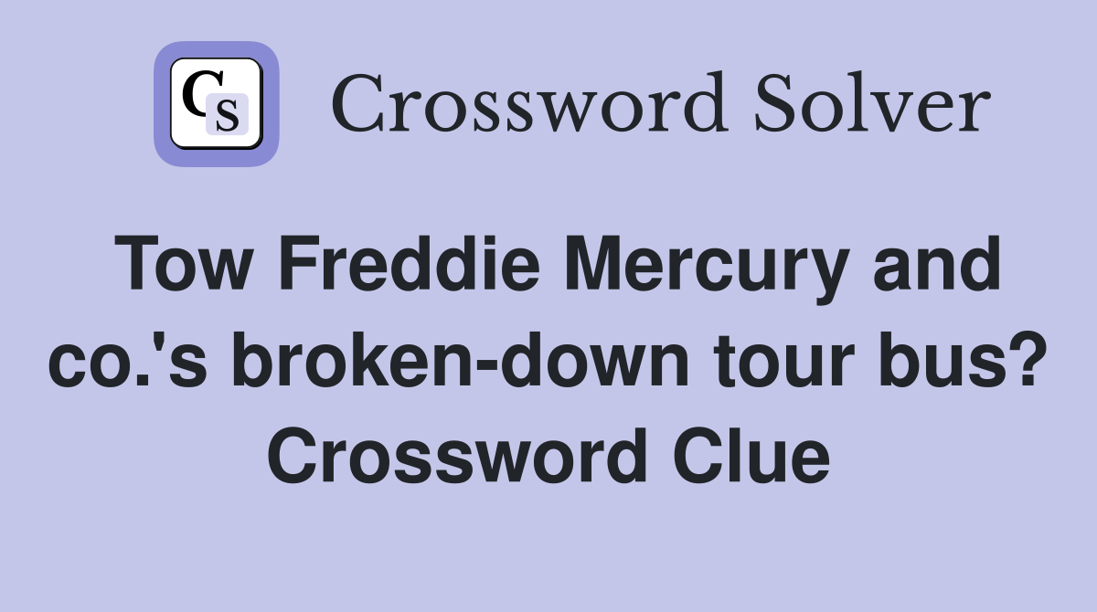 Tow Freddie Mercury and co #39 s broken down tour bus? Crossword Clue