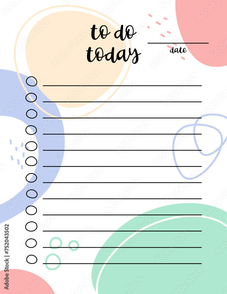 To Do Today list blank template Daily planner with copy space for