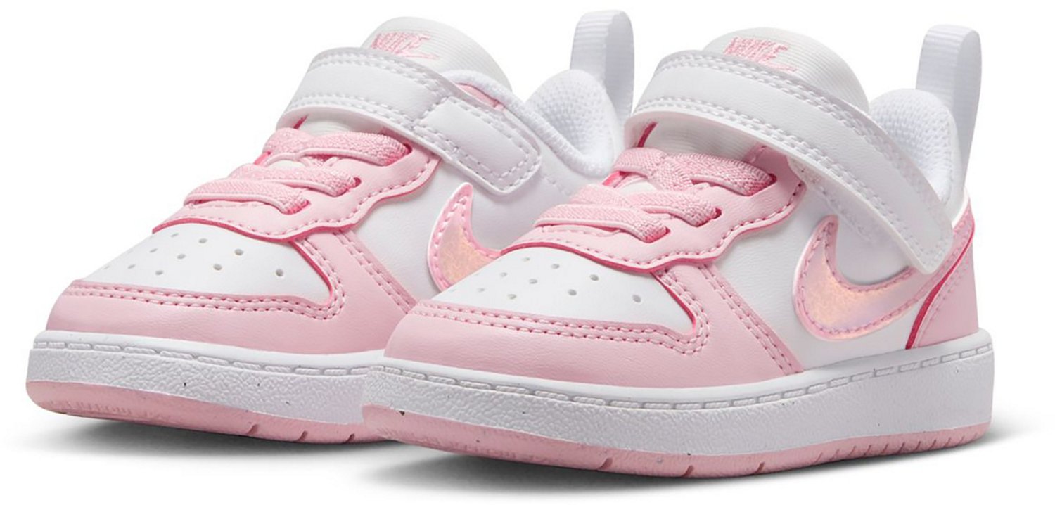 Kids Girls Toddler White Pink Nike Court Borough Low Trainers schuh