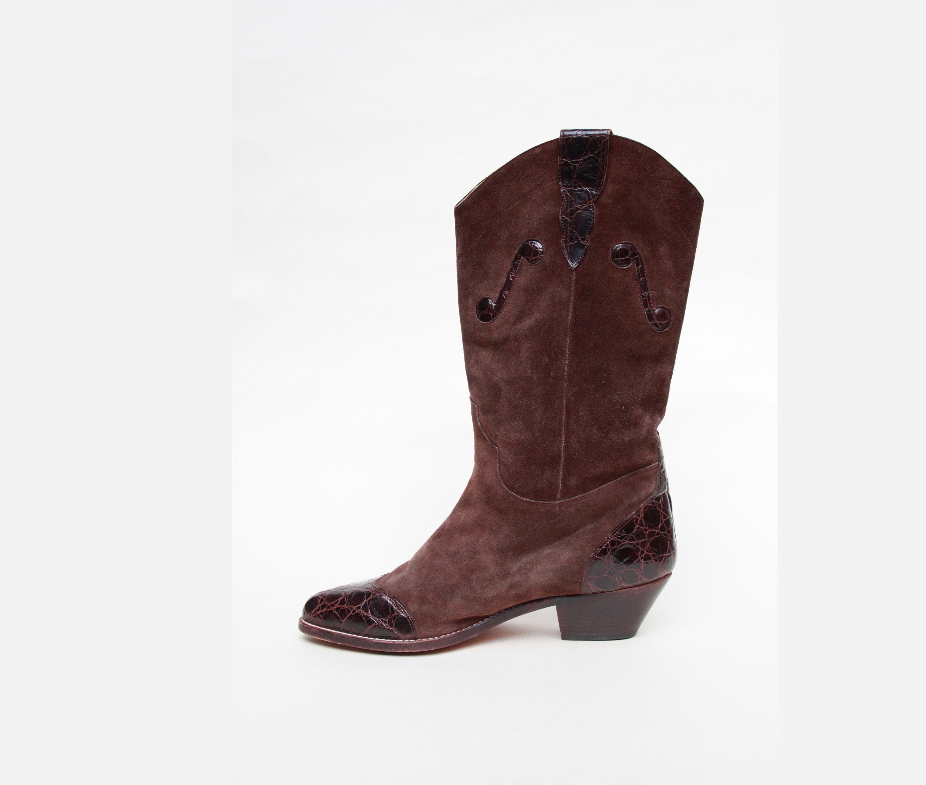 Vtg 1980s BOULET Western Cowboy Rockabilly Harness Metal Toe Tips Mens