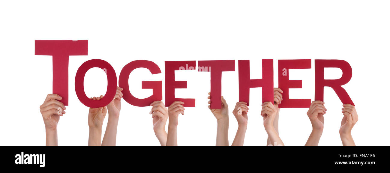 People Hands Holding Red Straight Word Together Stock Photo Alamy
