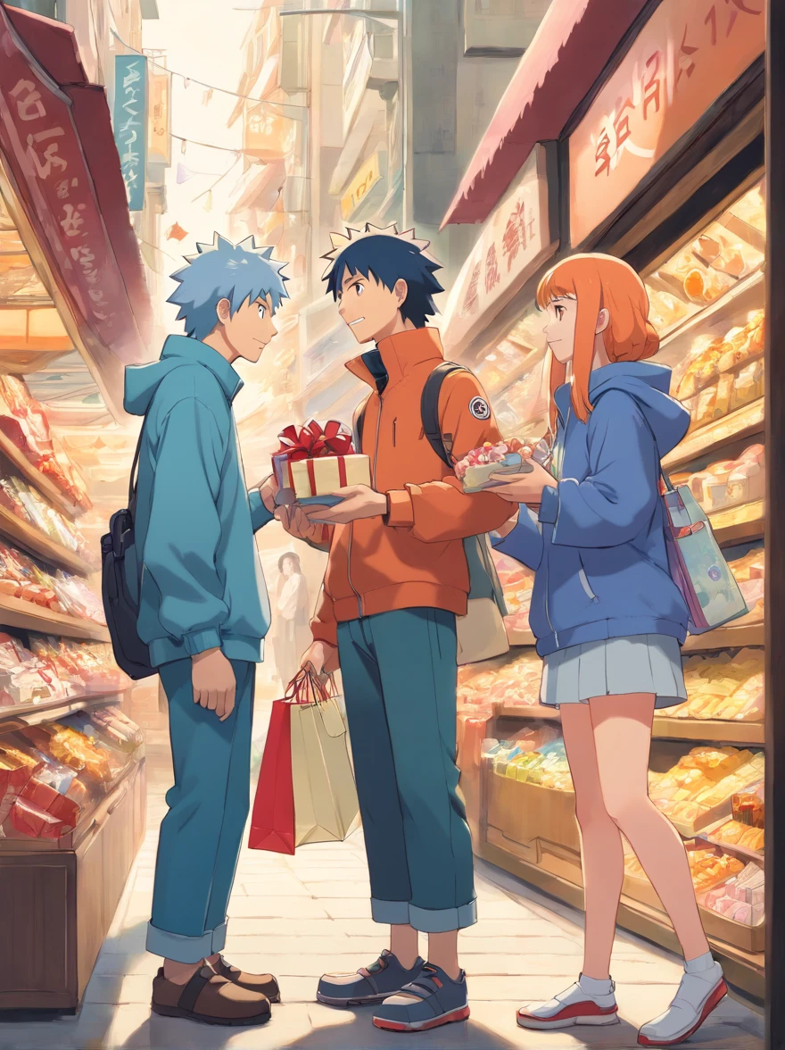Naruto giving choosing out a present for Hinata shopping on tokyo