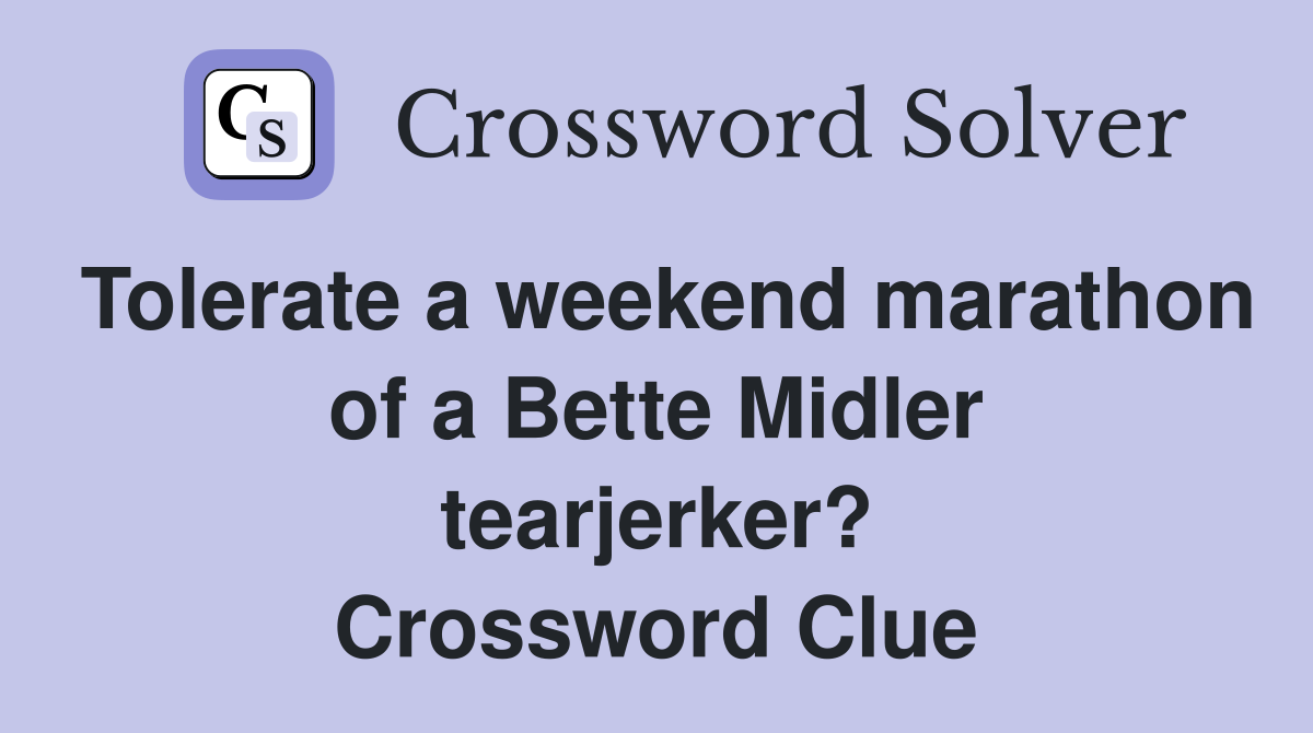 Tolerate a weekend marathon of a Bette Midler tearjerker? Crossword