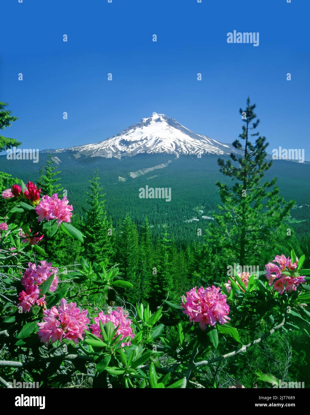 Mt Hood with Rhododendrons TomHarry Mountain Oregon Stock