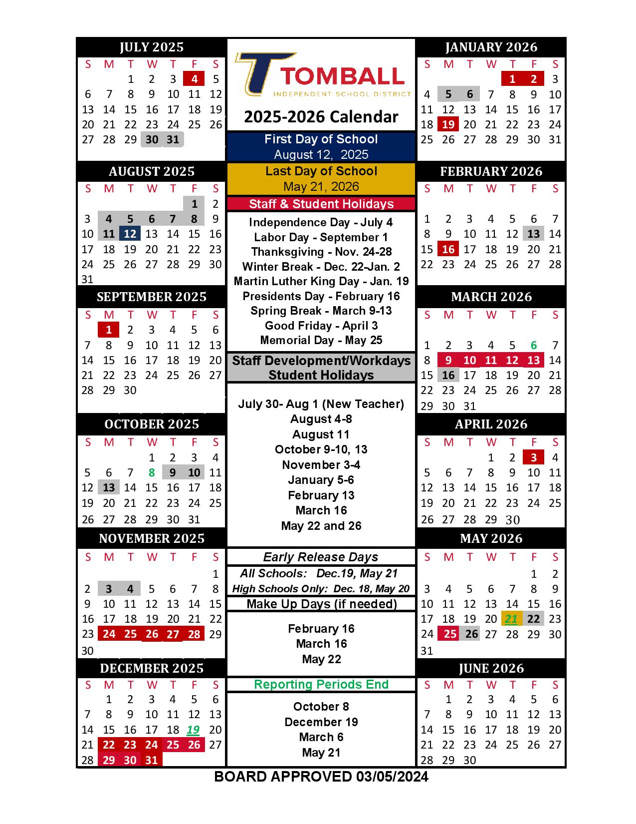 Tomball Isd Calendar 20252026 Educational Printable Activities