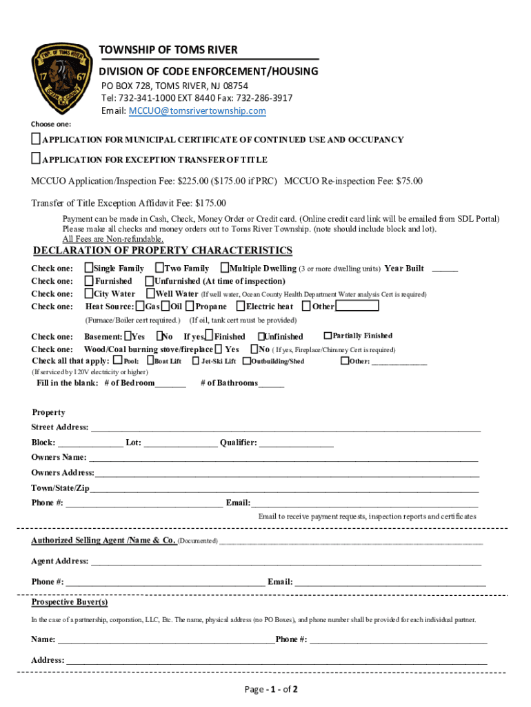 Fillable Online Township of Toms River NJ Continued Use and Occupancy