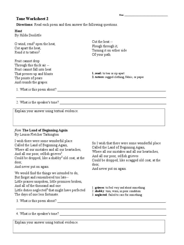 Mood And Tone Worksheet Example Free PDF Download Worksheets Library