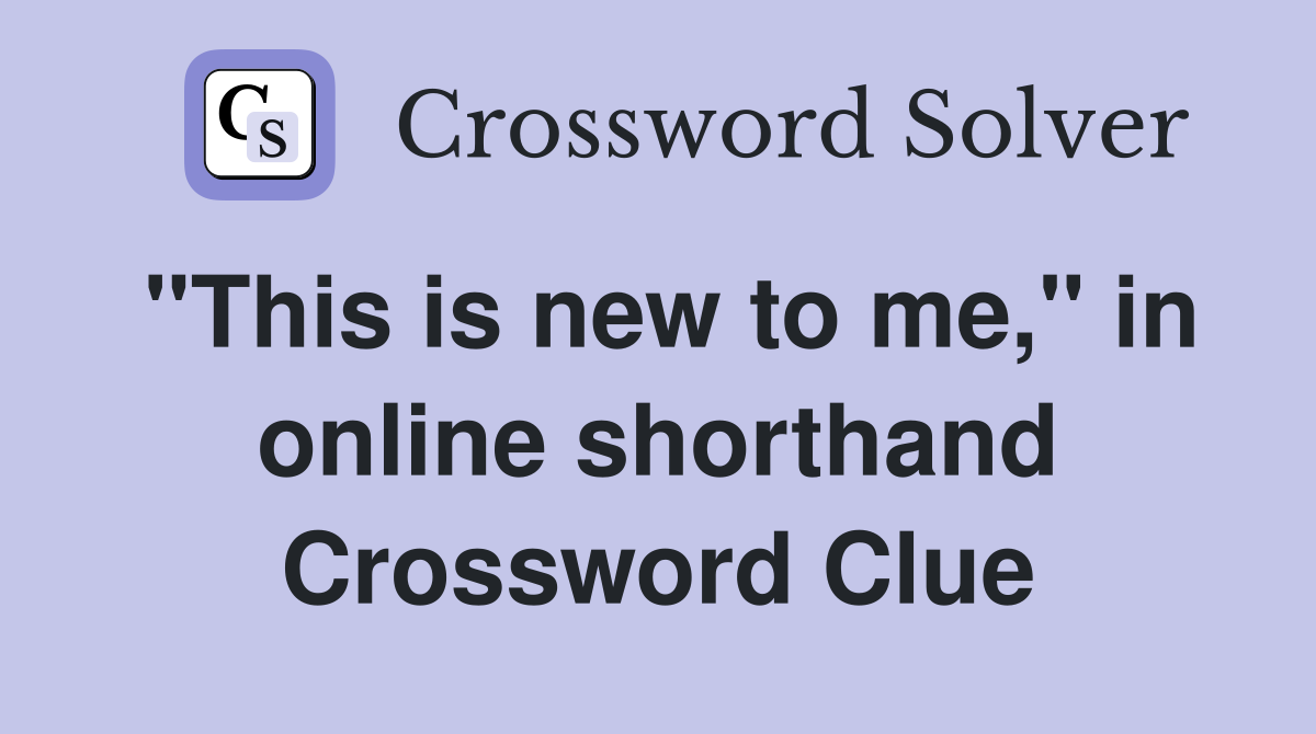 quot This is new to me quot in online shorthand Crossword Clue Answers