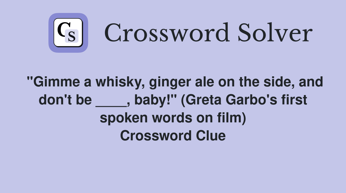 quot Gimme a whisky ginger ale on the side and don #39 t be baby