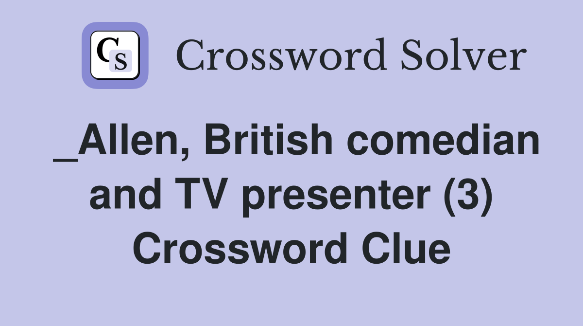 Allen British comedian and TV presenter (3) Crossword Clue Answers