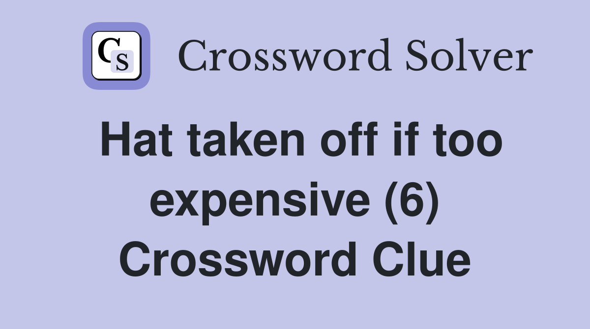 Hat taken off if too expensive (6) Crossword Clue Answers Crossword