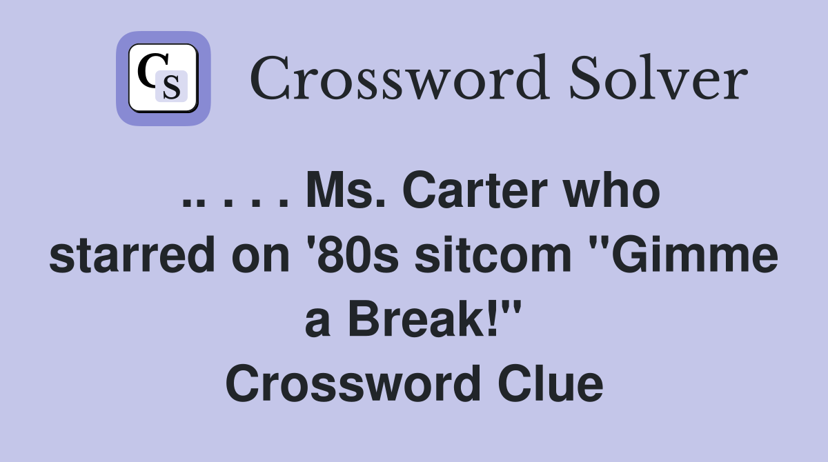 Ms Carter who starred on #39 80s sitcom quot Gimme a Break quot Crossword Clue