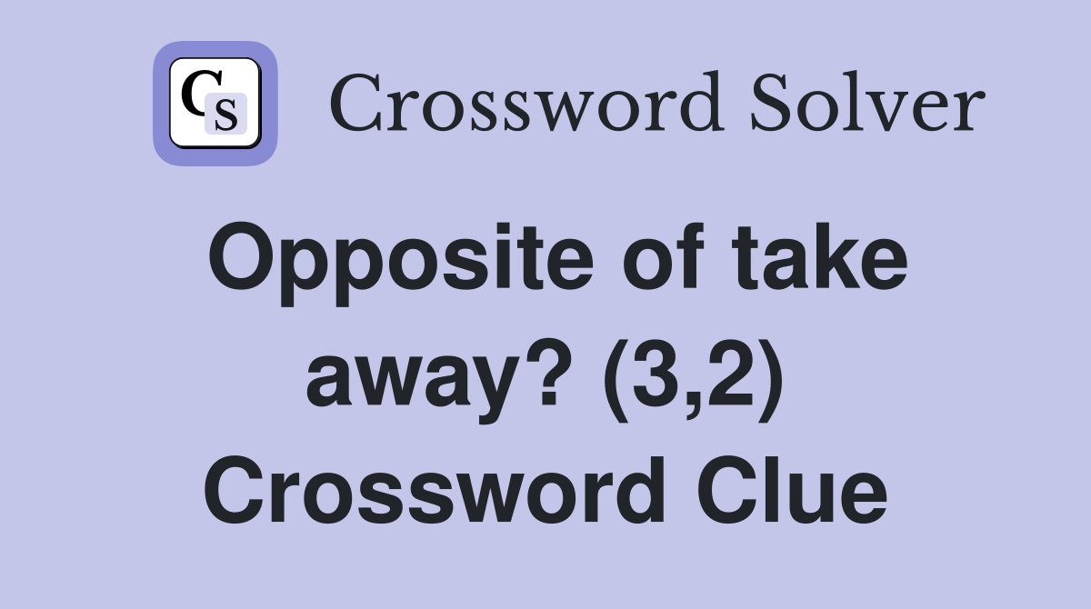 Opposite of take away? (3 2) Crossword Clue Answers Crossword Solver