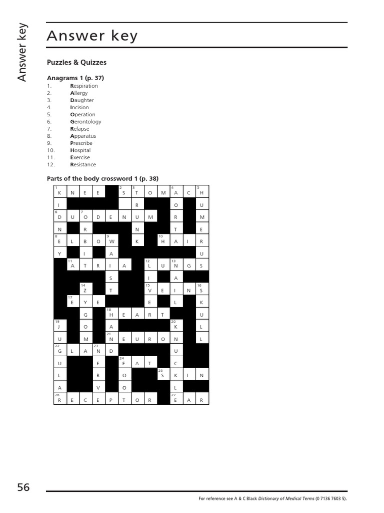 Lesson 1 Parts of The Body ANSWER KEYS Crosswords 1 PDF Puzzles