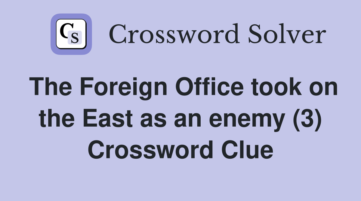 The Foreign Office took on the East as an enemy (3) Crossword Clue