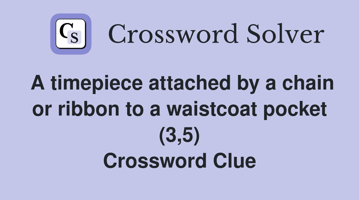 A timepiece attached by a chain or ribbon to a waistcoat pocket (3 5