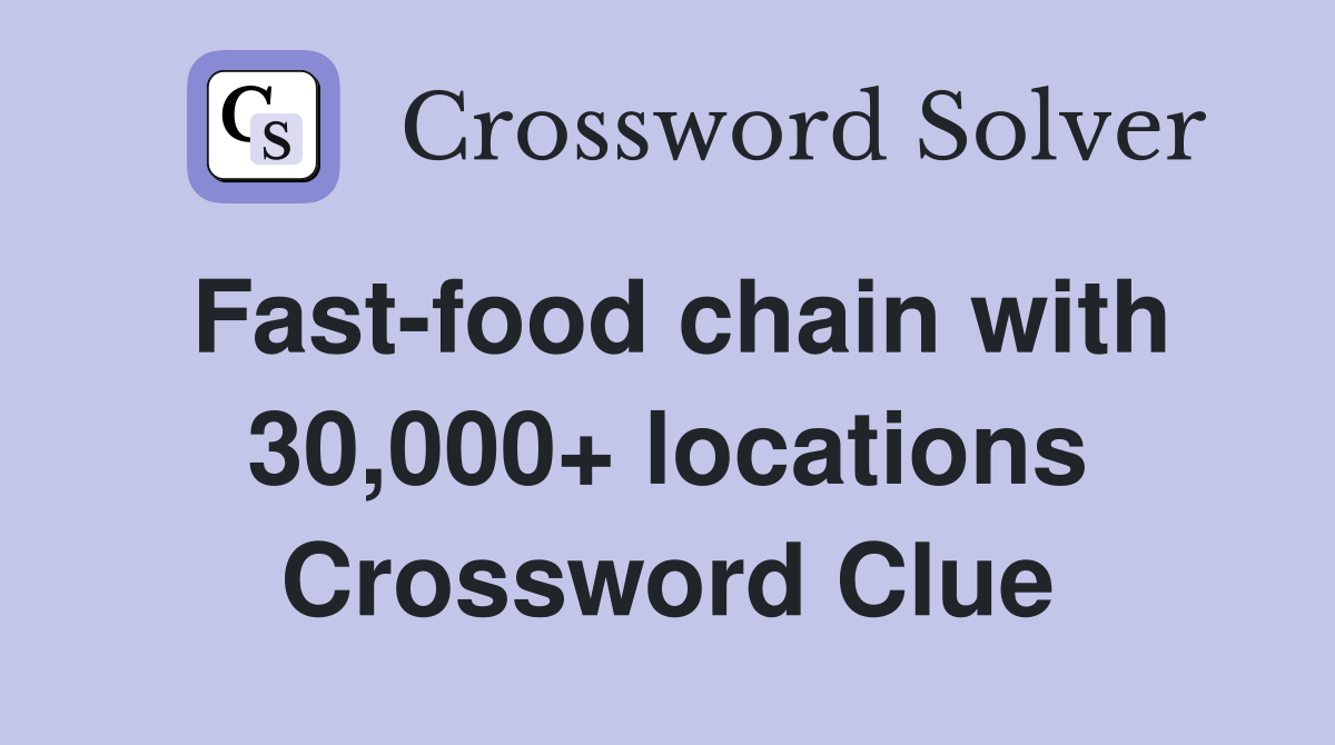 Fast food chain with 30 000 locations Crossword Clue Answers