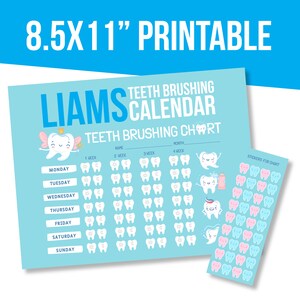 Custom Tooth Brushing Calendar Printable 11x8 5 quot A Reward Based