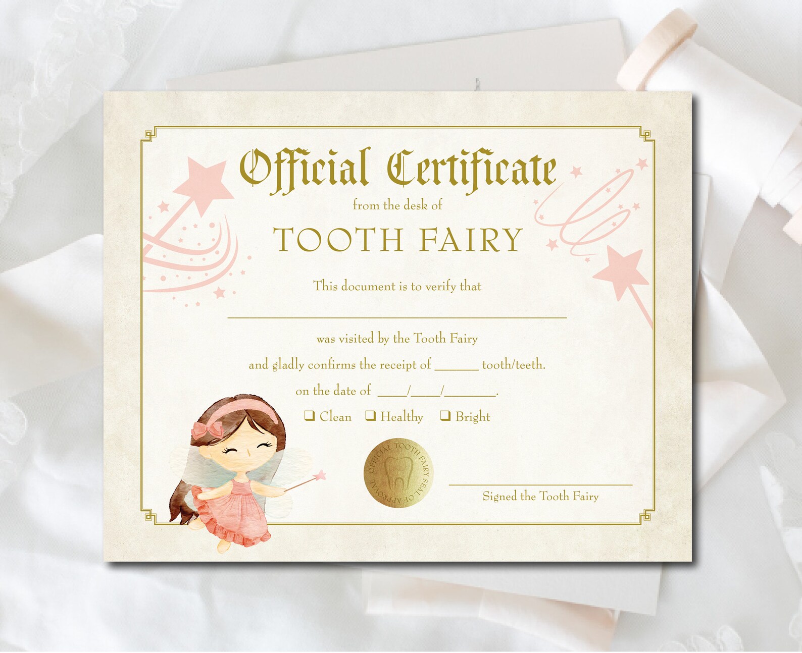 Tooth Fairy Certificate for Girl Tooth Fairy Receipt Lost Etsy