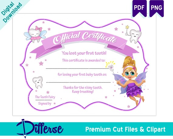 Tooth Fairy Certificate Kids Printable First Tooth Award Etsy Canada