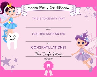 Tooth Fairy Certificate / DIGITAL / Tooth Fairy Printable / Tooth Fairy
