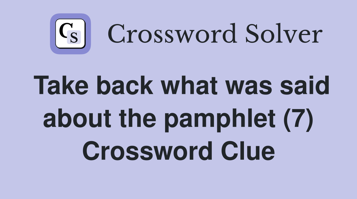 Take back what was said about the pamphlet (7) Crossword Clue Answers