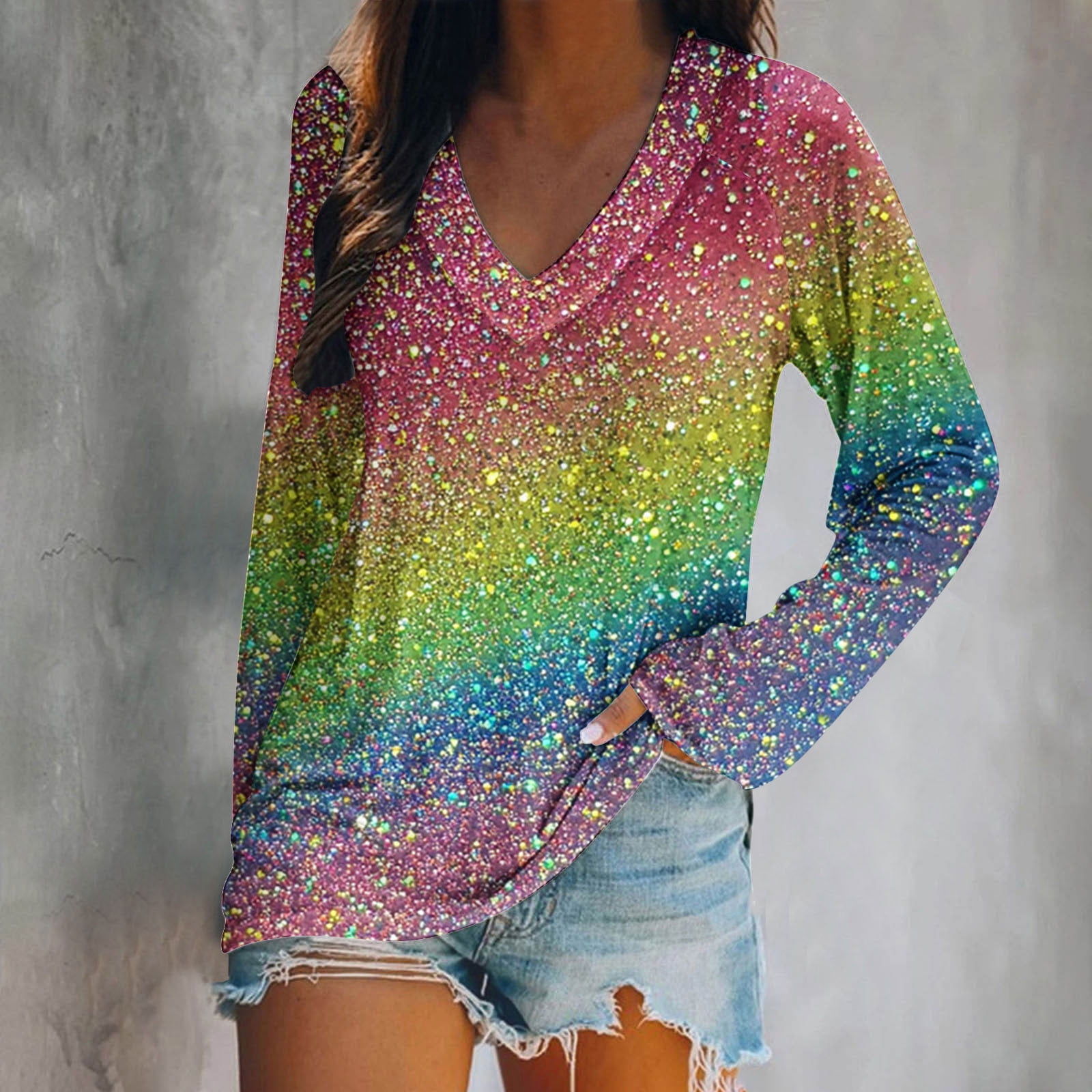 BLTIBY Womens Long Sleeve Sweatshirts Spring Fall Sequin Printed V Neck