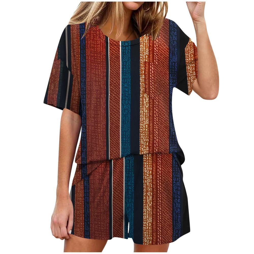 Bxsruta Pajamas Set for Women Women #39 s Fashion Short Sleeve Printed