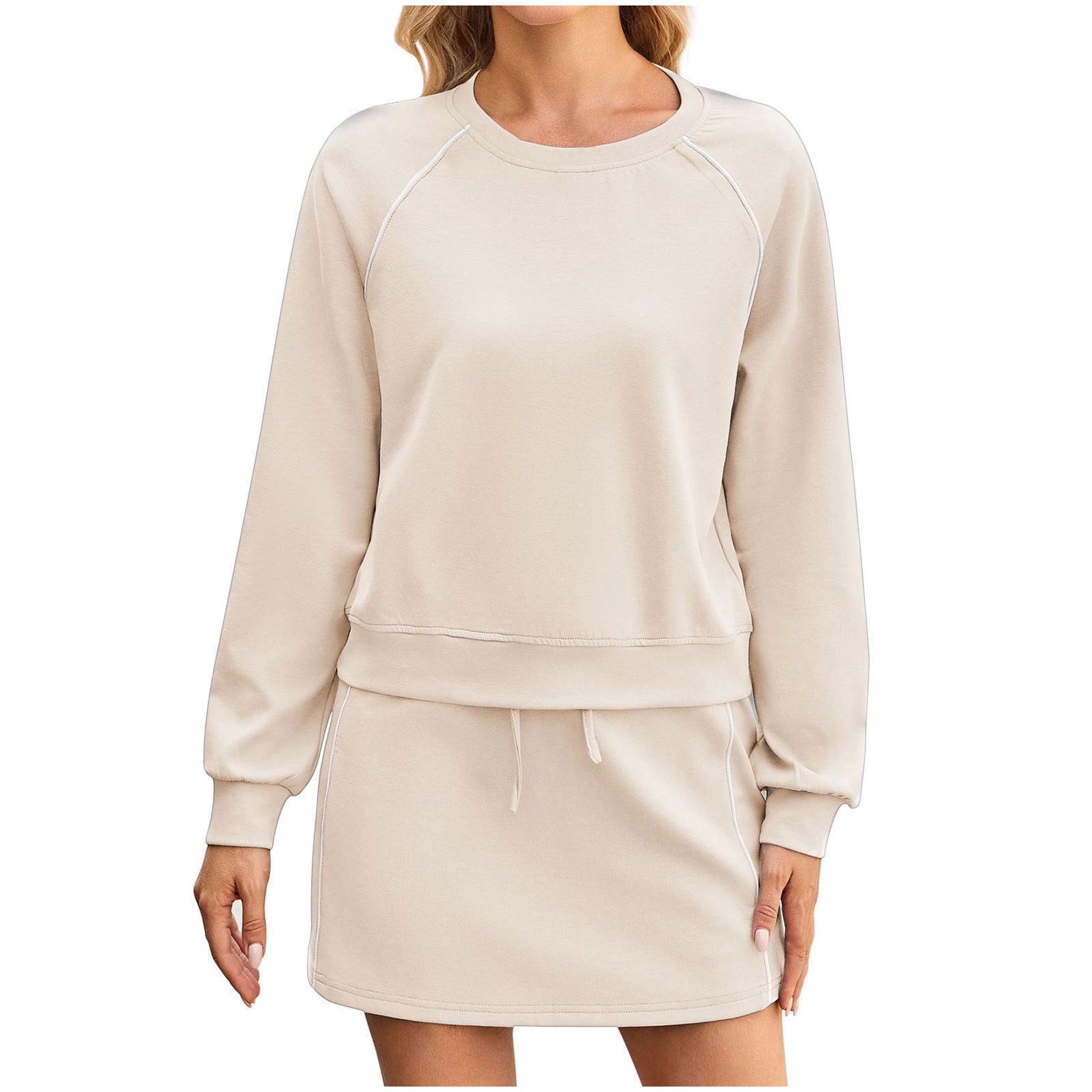 APEXFWDT Women #39 s 2 Piece Sweatsuit Skirt Set Long Sleeve Crew Neck