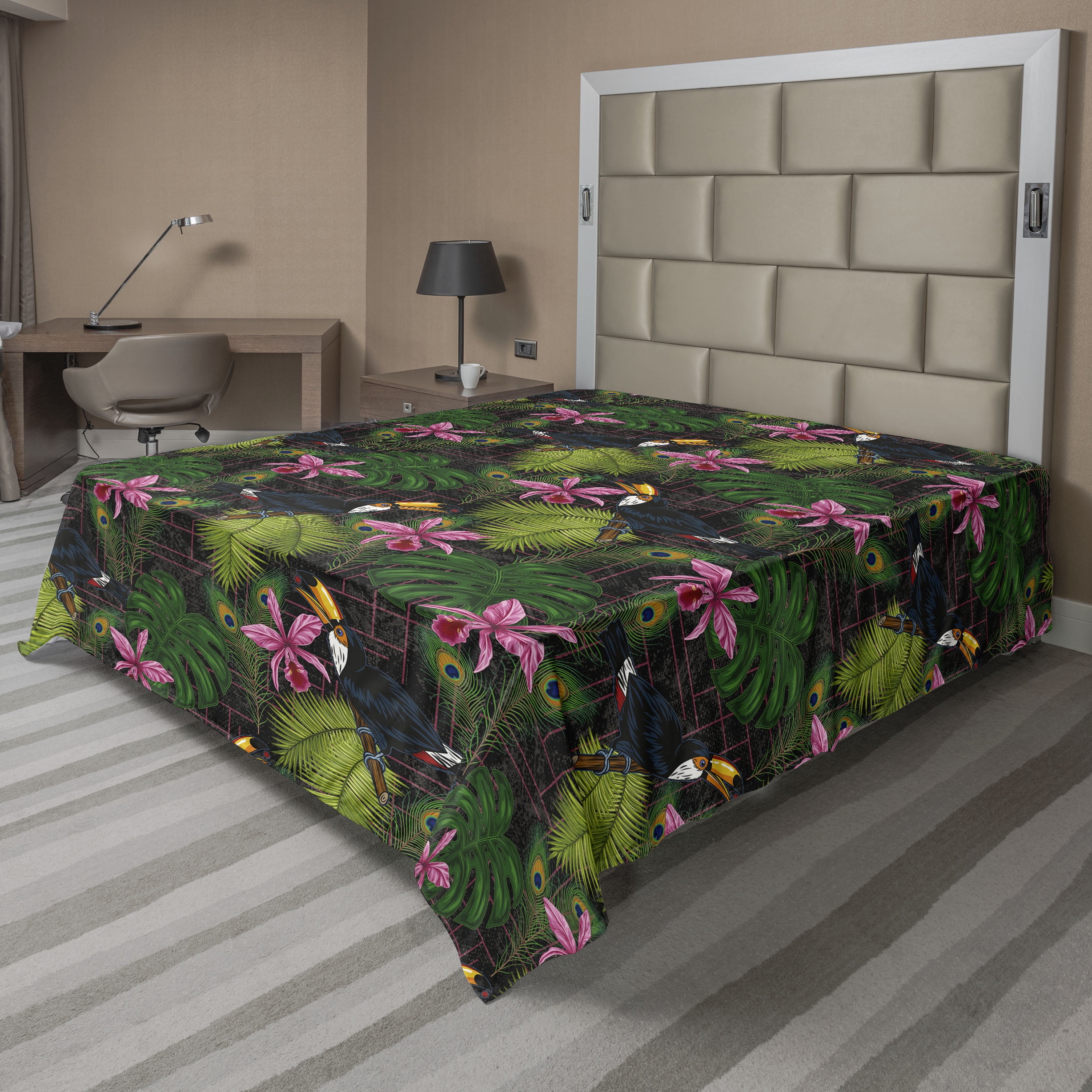 Ambesonne Jungle Flat Bedding Sheet Soft Top Sheet Toucan and Peacock