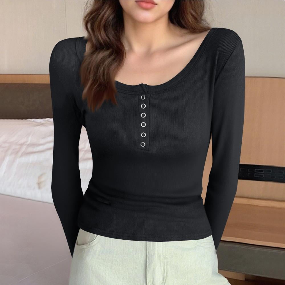 ClodeEU Womens Henley Sweater Tops Solid Color Button V neck Casual