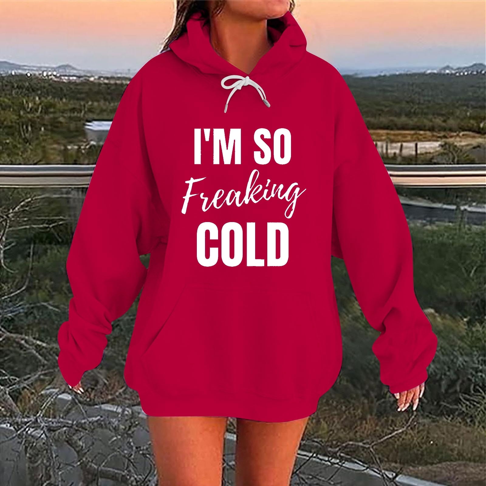 Delliss Women #39 s Winter Letter Print Top Loose Pocket Drawstring Shirt