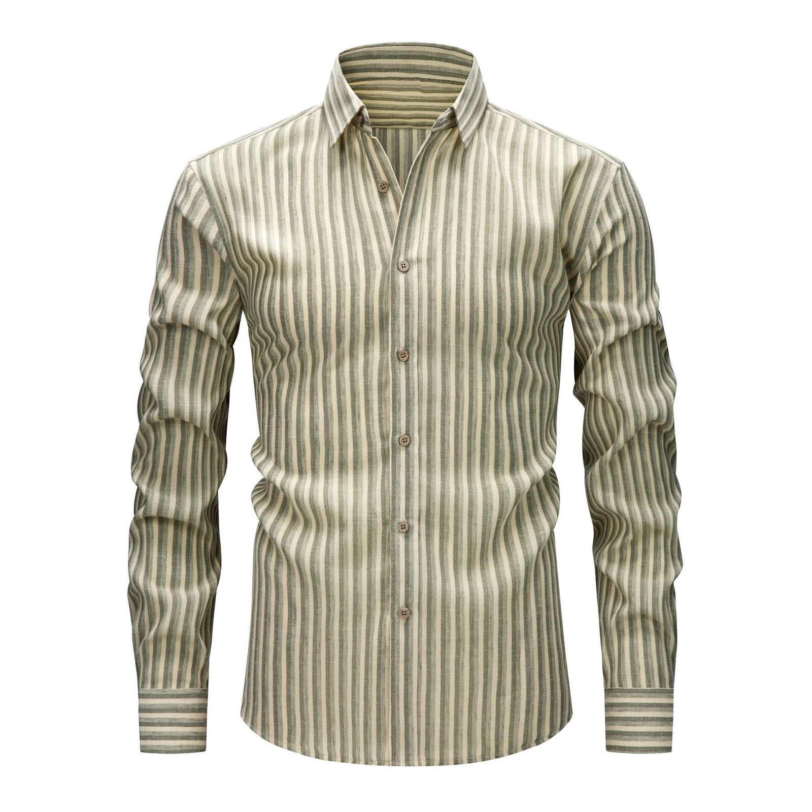 Men #39 s Striped Print Linen Shirt Long Sleeve Button Down Casual Classic